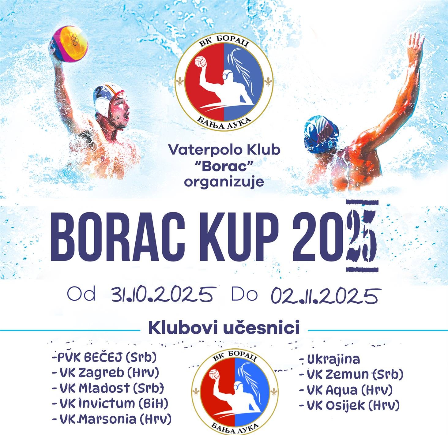 Turnir u Banja Luki se održava od 31.10. – 02.11.2025.g na Olimpijskom Bazenu.